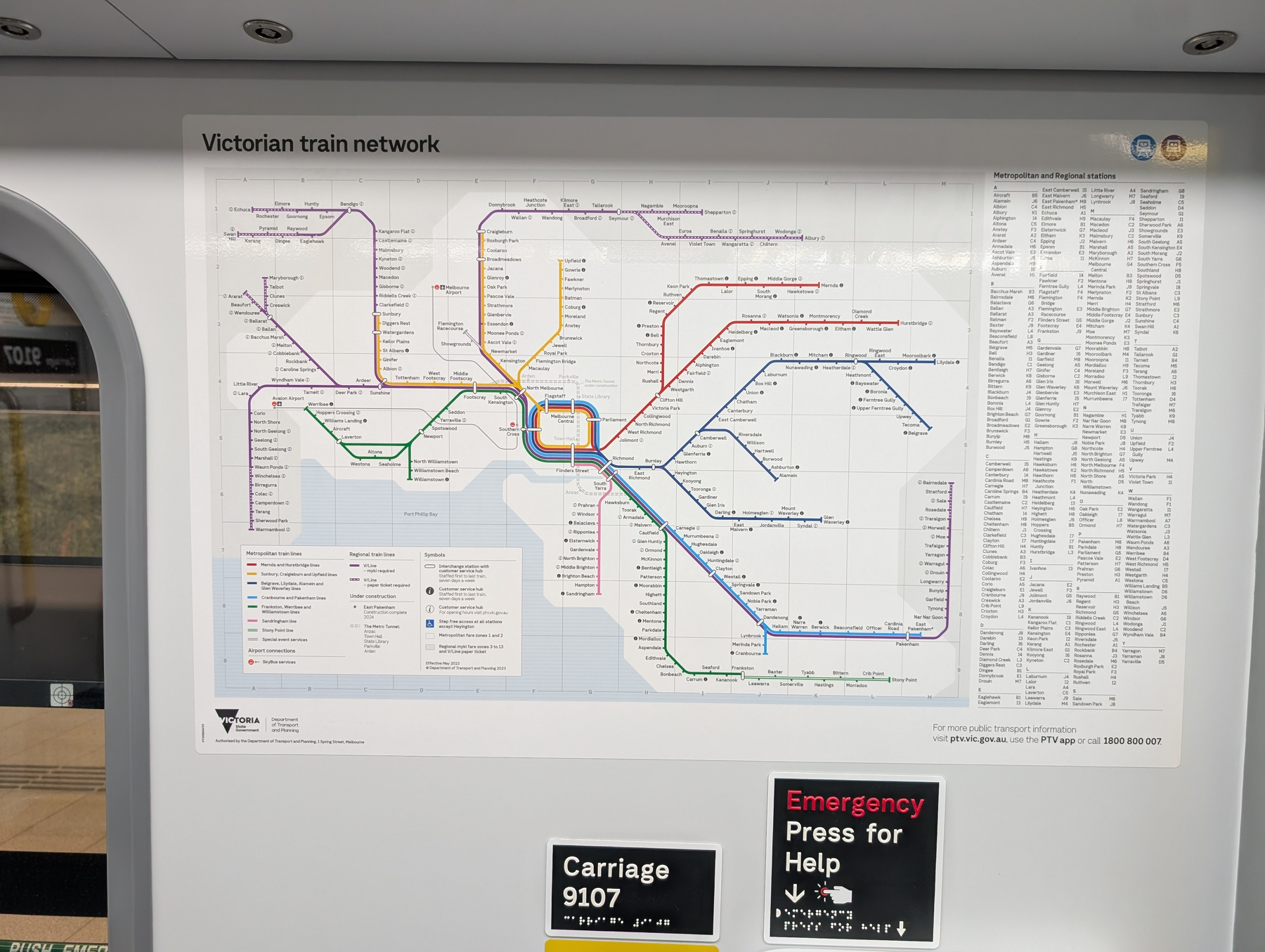 Old network maps that are still on some of the trains running through the Metro Tunnel (how ironic). Recorded for posterity.