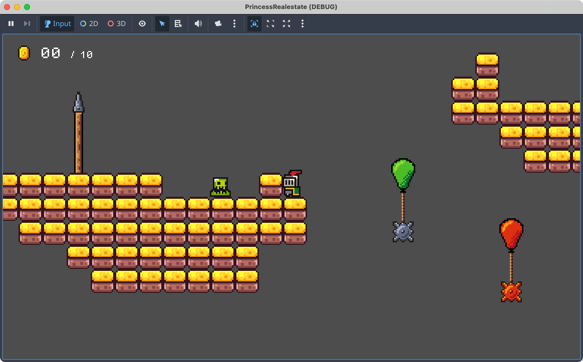 Hmm, I wonder if I should make a variant of the red balloon with mine. The mines will kill you, but the player can safely land on the top of the red balloon. I’m wondering if a variant that is unsafe for the player could be useful. Maybe a “spiky balloon” type. It can be attached to the grey mine I made for level 2-2.