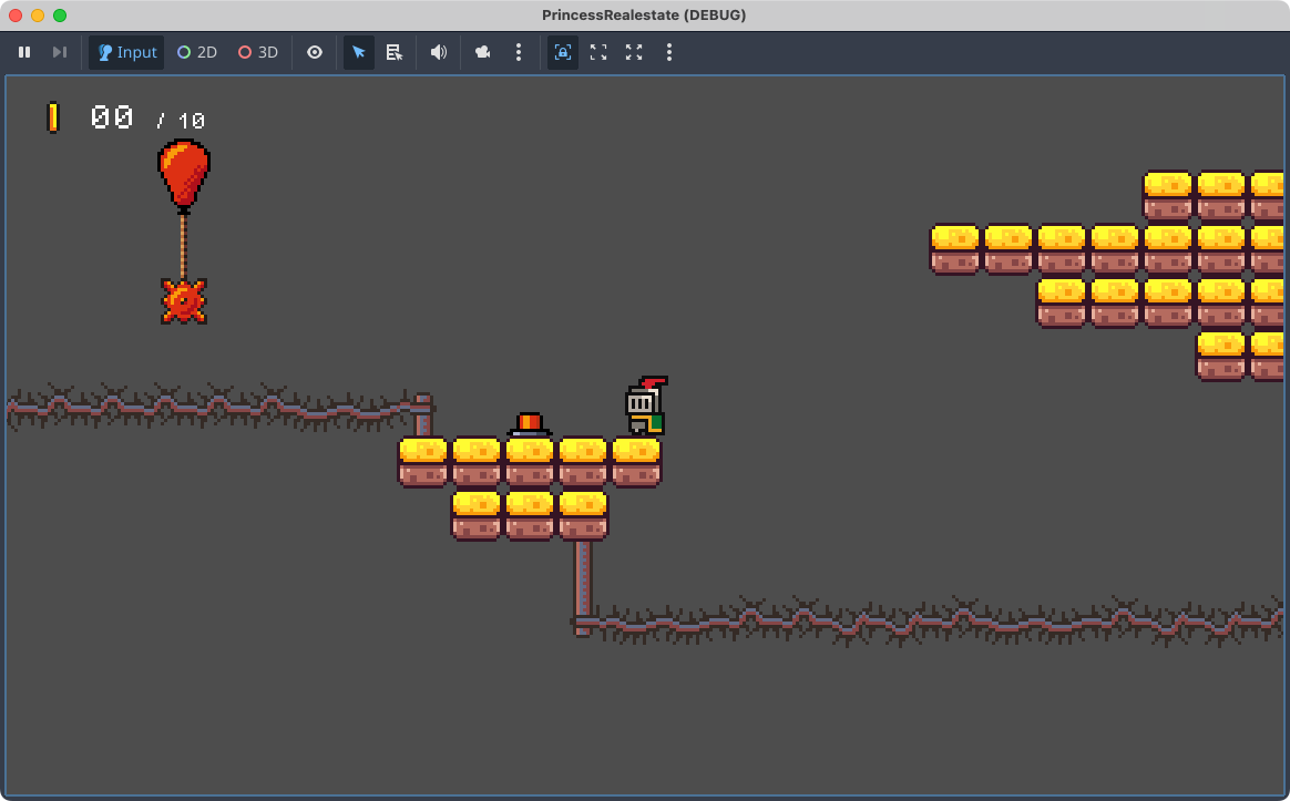 Working on the Godot game again. Finishing off the top layer of zone 3 in 3-1. Made a floating balloon with a smaller drop-payload trigger area, just to avoid accidental triggers if the player gets too close.