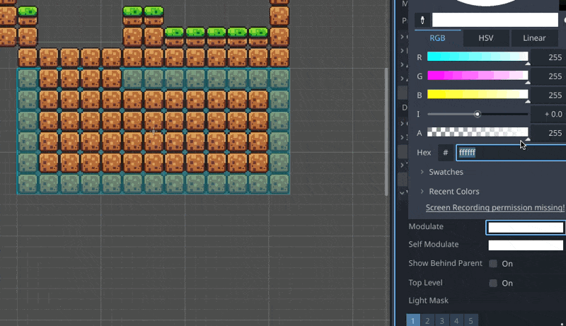 Now, the next question is how to fade the tile map in and out. I could just toggle the visibility but that’s way too jarring. What I hope to achieve is to add an animation player to SecretReveal