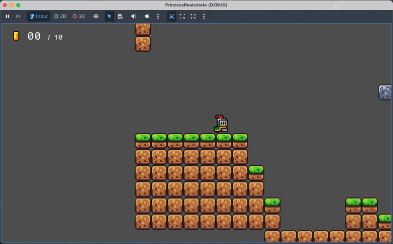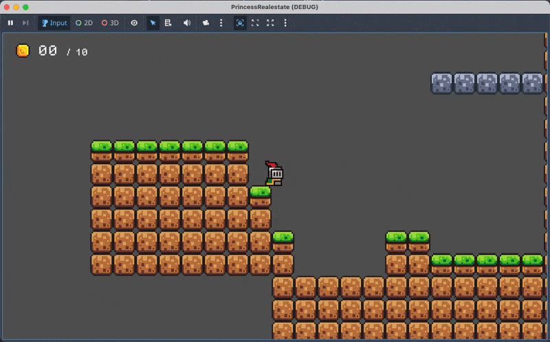 , the tile layer is hidden away and the player can see the revealed secret. The player leaving the Area2D