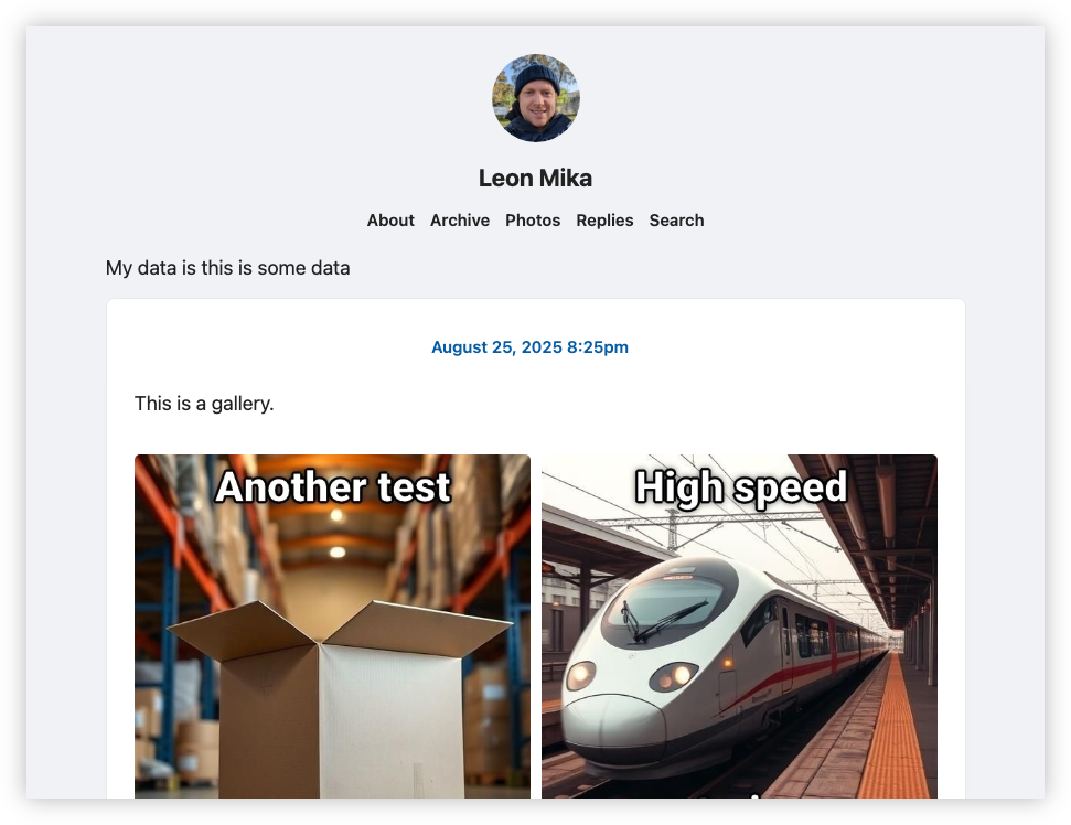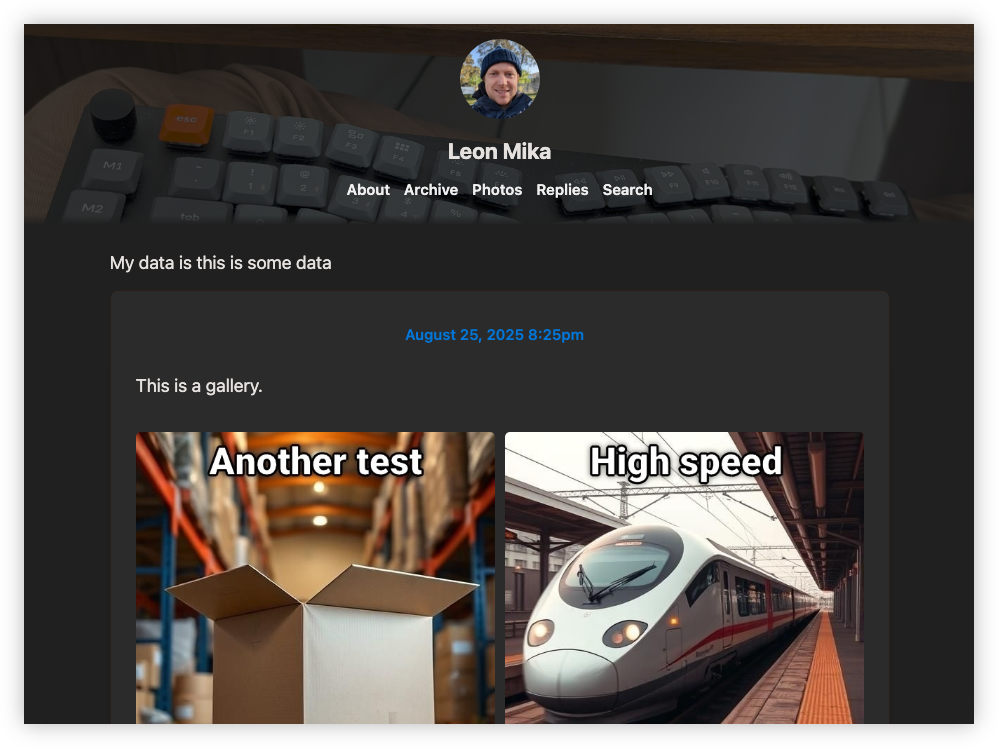 I’ve added the new Git repo and got it publishing to Netlify on commit to main. At the moment there’s a single JSON file, /site/data.json that has a test message. The goal is now to get that onto my test blog and included in the Hugo template on build. Naturally, because Hugo loves changing their public API so often, I need to see how this is done in Hugo 0.117 as it seems to be completely different in Hugo 0.141, the current version as of this writing.