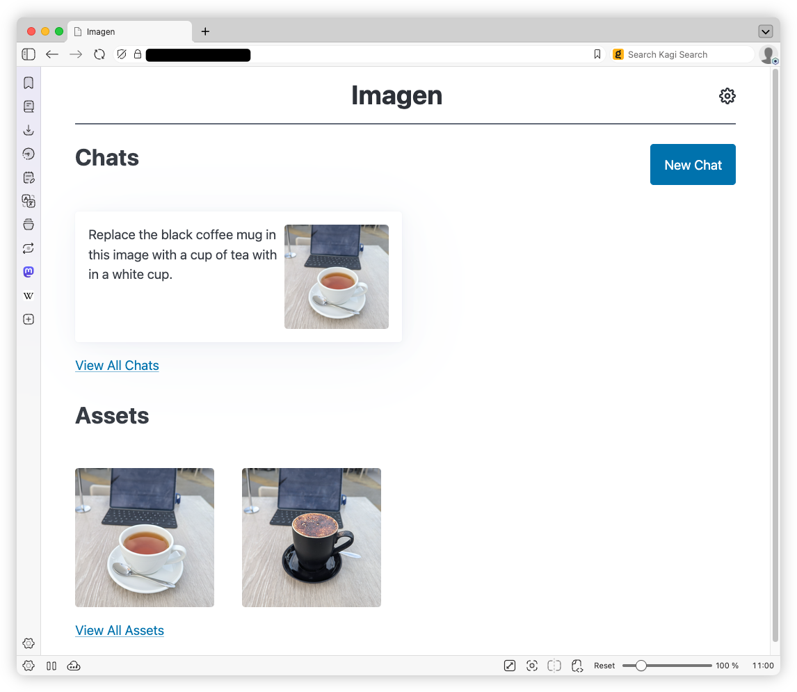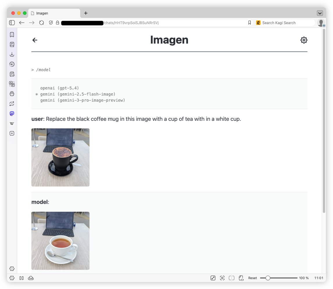 I won’t bore you with any justification on why I actually built this thing. It’s really nothing more than wanting a harness to play with Google’s Nano Banana. Up until now, I’ve been using Blogging Tools for that, but it lacked any ability to request changes to images in a chat-like interface (so called “multi-step flows”), where the context is preserved. So I made Imagen as a replacement.